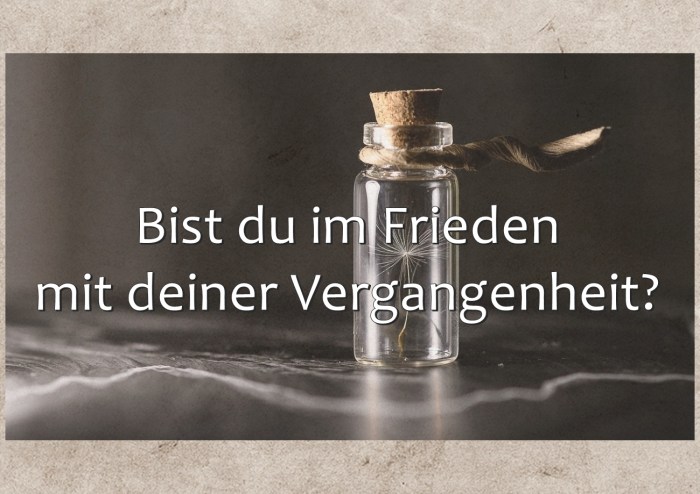 Es heißt ja ganz oft und überall, du sollst bitte im Hier und Jetzt leben. Du kannst nicht in der Vergangenheit und auch nicht in der Zukunft sein. Das ist alles gut und richtig, doch wenn du noch Verletzungen und Geschichten mit deiner Vergangenheit mit dir herumträgst, kannst du nicht wirklich im Hier und Jetzt leben.
