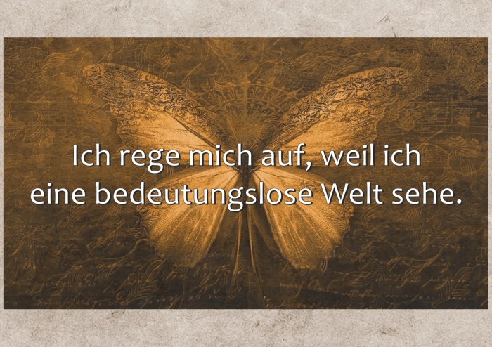 Ich rege mich auf, weil ich eine bedeutungslose Welt sehe.