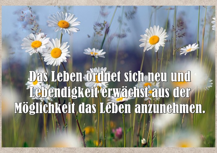 Das Leben ordnet sich neu und Lebendigkeit erwächst aus der Möglichkeit das Leben anzunehmen.